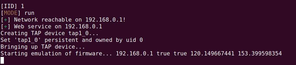 先使用FirmAE启动固件,启动时间会很久(10-30分钟)。